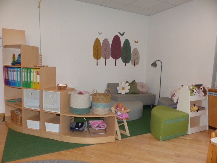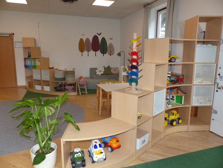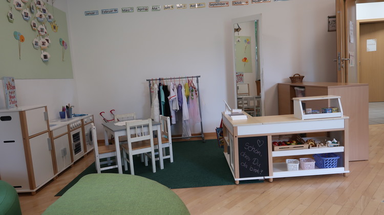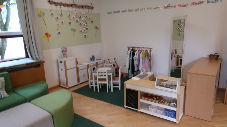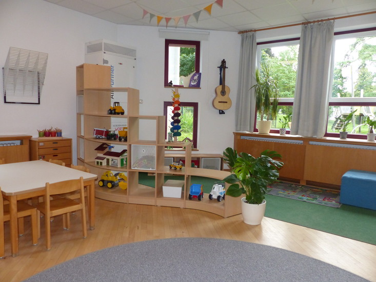 Unsere hellen, freundlich gestalteten Gruppenräume laden zum Wohlfühlen ein. Ein Gruppenraum hat den Schwerpunkt Bauen und Konstruieren, der andere Gruppenraum ist für Rollenspiele eingerichtet.